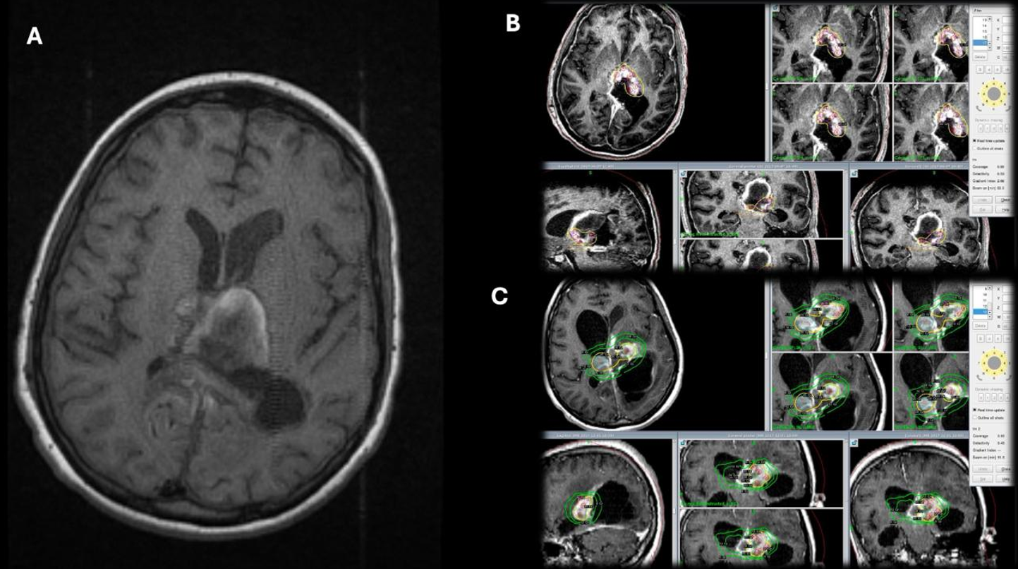 Literatür bilgisi oldukça sınırlı olmakla birlikte Eder ve ark. çalışmasında 2,9 cm³ hacmindeki lezyona 12 Gy marjinal doz uygulanmış, 48 aylık takipte tümör hacminde belirgin azalma sağlanmış ve tedaviye bağlı herhangi bir komplikasyon bildirilmemiştir.23